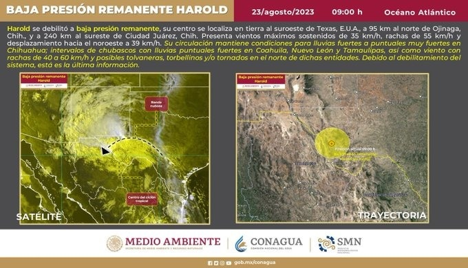 Chihuahua, Chih.- La depresión tropical Harold en combinación con el monzón mexicano, ocasionará lluvias puntuales a...