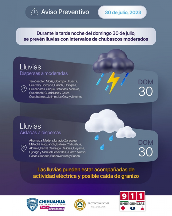 -Las precipitaciones generarán una disminución en el promedio de las temperaturas en gran parte del estado