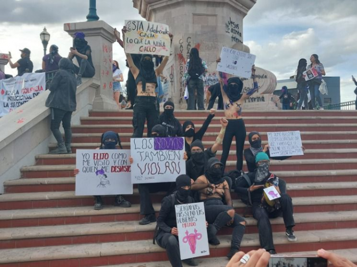 Grupos de mujeres que participaron esta tarde en la marcha del 8 de marzo, ocasionaron múltiples destrozos y actos vandálicos en edificios públicos...