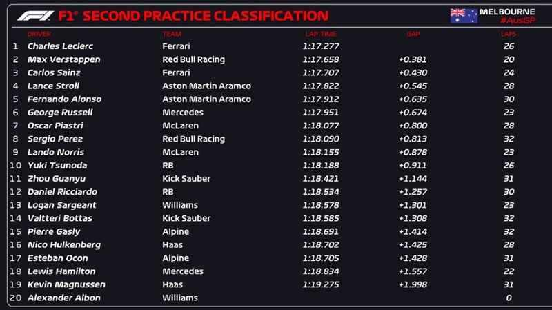 Y así lo demostró la escudería italiana al liderar la segunda sesión (FP2) de la mano de Charles Leclerc (1°) y Carlos Sainz (3°) de cara al último entrenamiento para que se realice la clasificación.