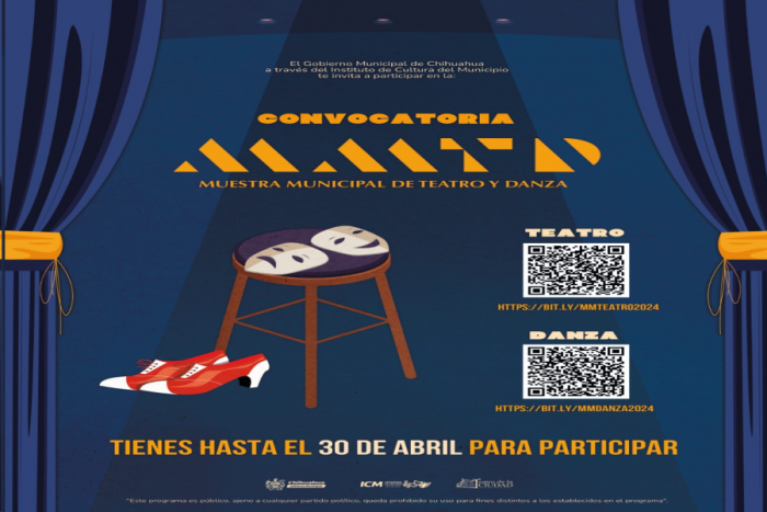 Chihuahua, Chih.- El Gobierno Municipal de Chihuahua, a través del Instituto de Cultura del Municipio (ICM), informa sobre dos convocatorias para la comunidad artística.La primera es la convocatoria de la Muestra Municipal de Teatro y Danza 2024, que estará abierta del 10 al 30 de abril de 2024 a las 15:30 horas, y es para todas las compañías de teatro locales, así como a grupos, compañías, colectivos y productores(as) de la disciplina de danza del municipio de Chihuahua.