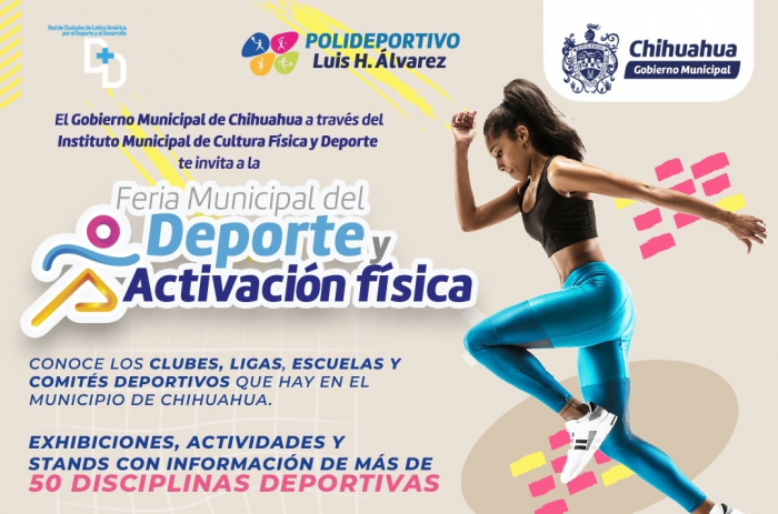 Chihuahua, Chih.- Con la exposición de 50 disciplinas deportivas, el Gobierno Municipal de Chihuahua, a través del Instituto Municipal de Cultura Física y Deporte (IMCFD), invita a la población en general a acudir a la Feria del Deporte y Actividad Física que se realizará este sábado 20 de abril en el Polideportivo Luis H. Álvarez.