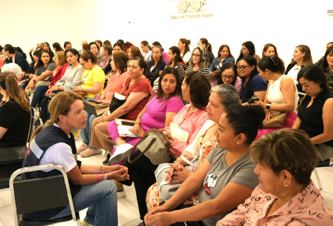 Lo anterior durante un encuentro con madres cuidadoras de Casas de Cuidado Diario A.C., el cual fue encabezado por Marco Bonilla, candidato a Presidente Municipal, así como Ana Gabriela Guerrero, suplente de Daniela Álvarez, aspirante al Senado por la coalición PAN-PRI-PRD.