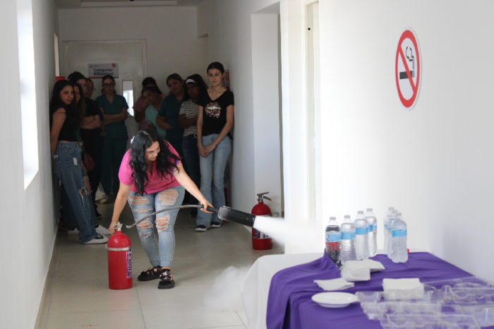 Entre otros temas, fue impartida la sesión del uso y manejo adecuado de distintos tipos de extintores, para saber cómo actuar en caso de emergencia con fuego, tanto dentro, como fuera de las instalaciones.
