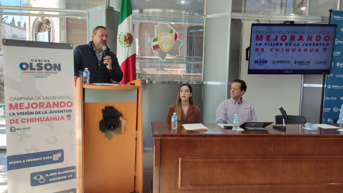 Chihuahua, Chih.- En rueda de prensa el Diputado Carlos Olson presentó el programa "Mejorando la Visión de la Juventud de Chihuahua", la cual en conjunto a la compañía Good-Lite, llevarán 6,000 tamizajes visuales a niños del oriente de la ciudad.
