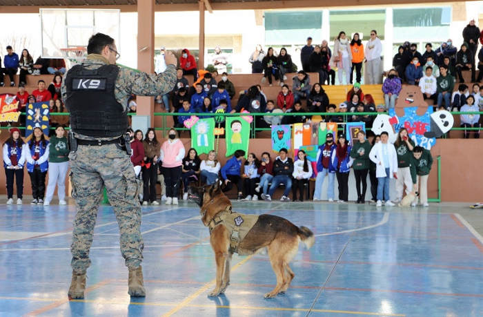 Exhiben trabajo del grupo canino K9 ante cientos de estudiantes del Esfer
