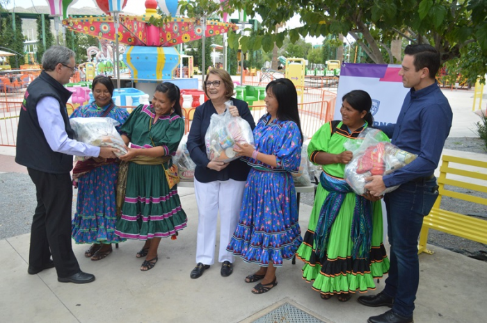 La presidenta del DIF Estatal, María Eugenia Galván Antillón y el secretario de Pueblos y Comunidades Indígenas, Enrique Rascón, convivieron con las niñas corredoras rarámuri que formaron parte de la Segunda Carrera por los Derechos de Niñas, Niños y Adolescentes “Vamos juntas y juntos hacia la meta”, en la Ciudad de México.