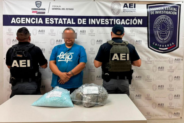 Chihuahua.- Por delitos contra la salud, fue detenido y consignado al Ministerio Público Federal, un sujeto identificado como Jesús Gabriel J. R., en Ciudad Juárez, Chihuahua, a quien le aseguraron 8.160 kilogramos de fentanilo, cuyo valor se estima en 240 mil dólares o su equivalente en 4.6 millones de pesos.