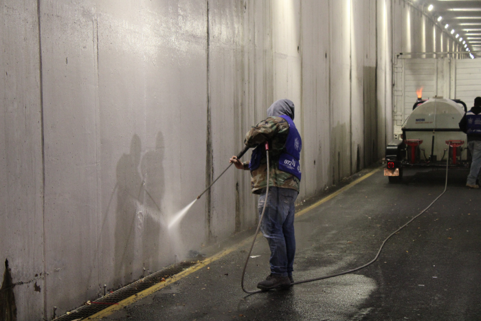 Personal de la Subdirección de Servicios Múltiples realizaron las acciones de lavado en ambas paredes del mencionado túnel. Estas labores se efectuaron durante la noche para evitar entorpecer el tráfico vehicular que a diario circula por el lugar.