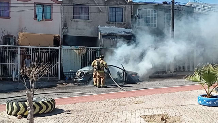 Los hechos se registraron entre las calles Damaso Alonso y 15 de Enero donde un vehículo presentó un corto circuito y posteriormente exploto, causando daños totales a el auto Neón.