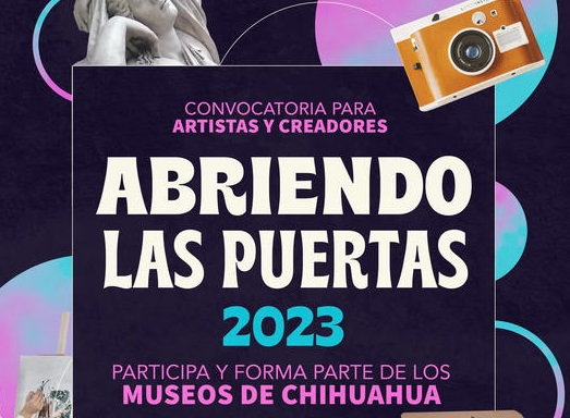Chihuahua, Chih.- El Gobierno Municipal de Chihuahua, a través del Instituto Municipal de Cultura (ICM), invita a los artistas visuales, escultores y creadores chihuahuenses a participar en la convocatoria “Abriendo las Puertas”, la cual se desarrolla para que los participantes puedan concursar para que su obra sea elegida para ser expuesta en los museos de la ciudad de Chihuahua.