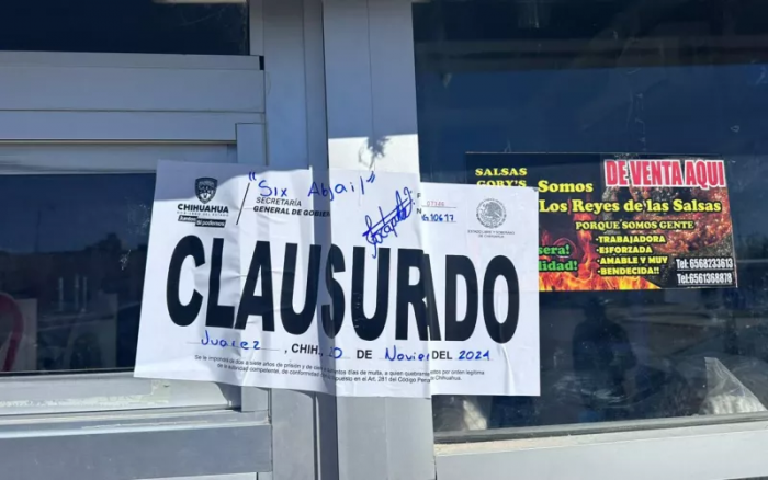 * Tienda de abarrotes “Las Palmas” por falta de permiso provisional (Chihuahua).