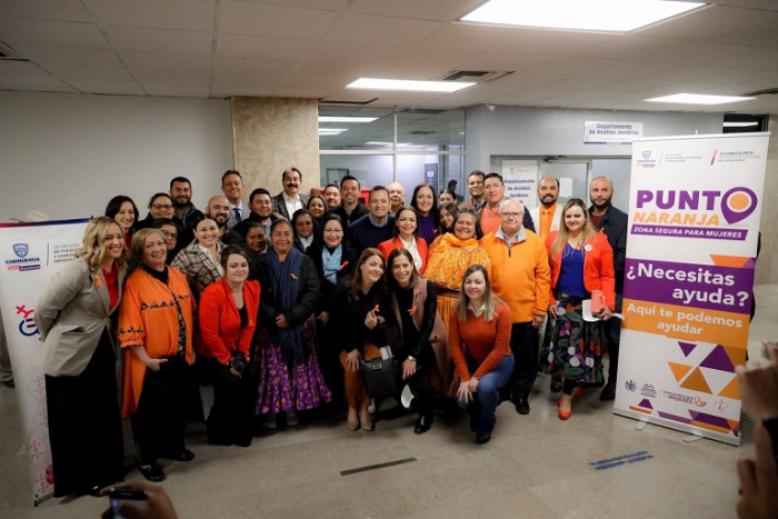 Chihuahua, Chih.- Como parte de las acciones en materia de prevención y atención a la violencia de género, Gobierno del Estado y el Municipio de Chihuahua pusieron en marcha el programa Puntos Naranja, una estrategia para crear espacios seguros donde las mujeres que se encuentren en una situación de riesgo pueden resguardarse y solicitar apoyo para llamar a las autoridades.