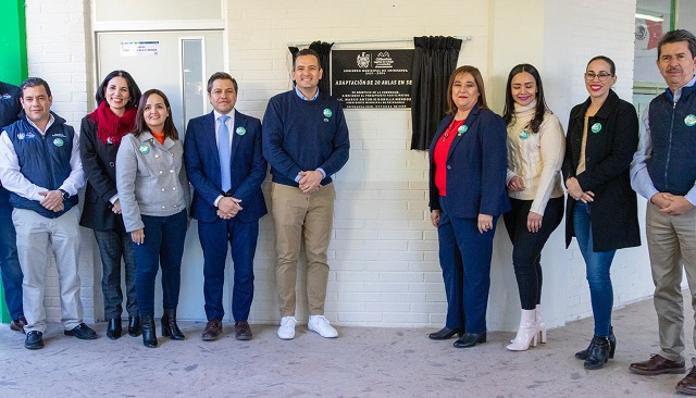 Asimismo, detalló que se acondicionaron 80 paneles de iluminación tipo LED de 60 x 6, así como 33 metros lineales de ducto flexible de 8 pulgadas y 19 difusores; para mayor seguridad y acceso a las aulas, se instalaron 20 puertas de multipanel tipo escolares con mirilla o ventana; se realizaron 220 metros cuadrados de pintura; y en los salones 19 y 20, se eliminó la pared divisoria a fin de convertirla en una espacio grande que podrá ser usado como auditorio.