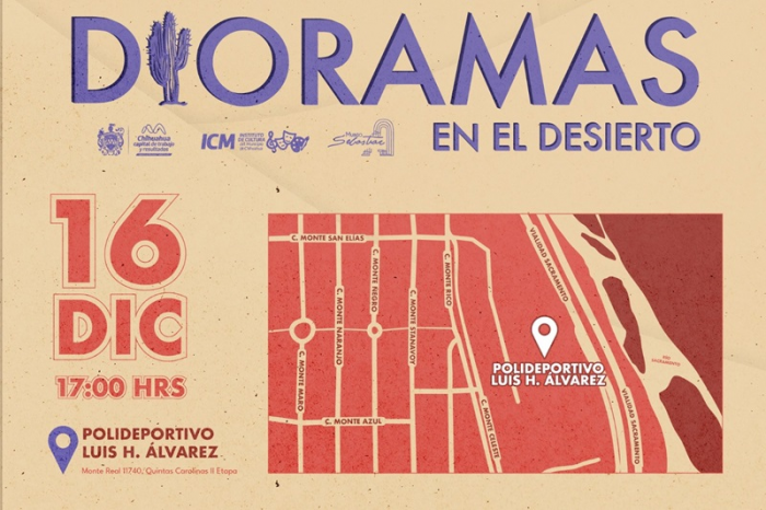 Chihuahua, Chih.- El Instituto de Cultura del Municipio invita a la inauguración de la exposición “Dioramas en el Desierto”, que se llevará a cabo el próximo lunes 16 de diciembre a las 17:00 horas en el Polideportivo Luis H. Álvarez, ubicado en la colonia Quintas Carolinas.