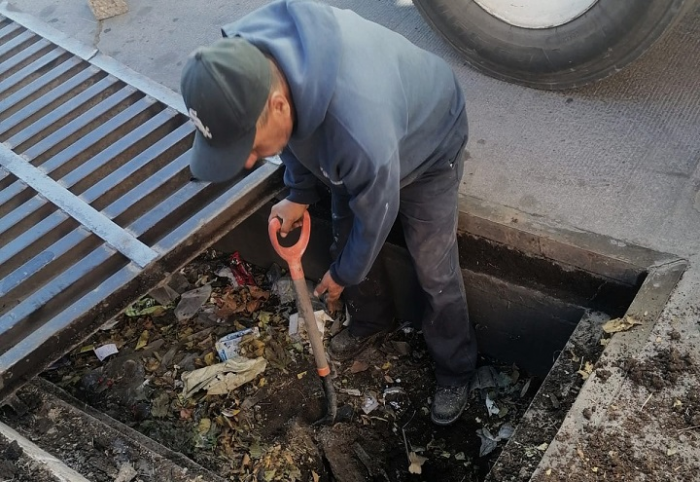 Con ayuda de pala y pico, las cuadrillas se encargan retirar desechos y basura como bolsas de plásticos, trapos, hierba, ramas, botellas que obstruyen las rejillas.