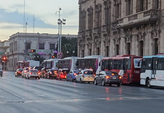 CHIHUAHUA, Chih.- La mañana de este viernes, alrededor de 20 camiones del Bowi y sus chóferes arribaron al Palacio de Gobierno para manifestarse y exigir mejores condiciones salariales.Alrededor de entre 20 y 30 camiones del transporte colectivo detuvieron su marcha sobre las avenidas Carranza, Aldama, Escorza y Vicente Guerrero, con el fin de visibilizar sus demandas sin bloquear por completo la circulación.