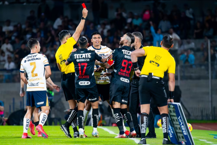 Esta noche el futbolista español Sergio Ramos sufrió su primera expulsión como jugador de los Rayados de Monterrey. En la polémica victoria sobre Pumas (3-1) en el cierre de la jornada 12 del Clausura 2025, el defensor recibió la tarjeta roja tras intentar patear por la espalda a Guillermo Martínez.