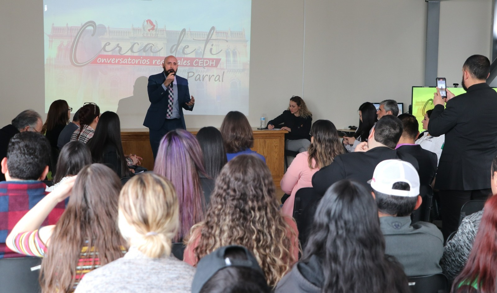 En el transcurso del conversatorio se presentaron videos con testimonios de mujeres que sufren violencia, así como de funcionarias públicas del municipio de Parral que atienden y dan contención a víctimas.