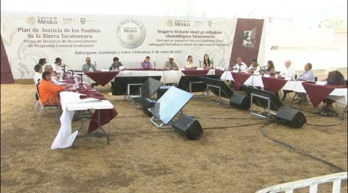 Baborigame, Chih.— La presidenta de México, Claudia Sheinbaum Pardo, encabezó este viernes la firma de decretos que reconocen la propiedad comunal tradicional de tierras a comunidades rarámuris del seccional de Baborigame, en el municipio de Guadalupe y Calvo.