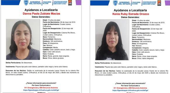 No se sabe de su paradero desde el 22 de mayoCHIHUAHUA, Chih.-La Fiscalía General del Estado emitió una alerta para localizar a dos menores de edad que permanecen desaparecidas desde el pasado 22 de mayo del presente año en Ciudad Juárez.
