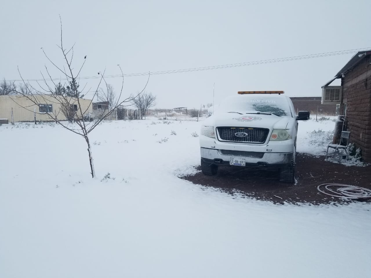 Chihuahua, Chih.- La Coordinación Estatal de Protección Civil con información dada por las unidades municipales de Protección Civil de Casas Grandes, Janos y Juárez, informó sobre la presencia de nieve en diversas zonas de los municipios mencionados.