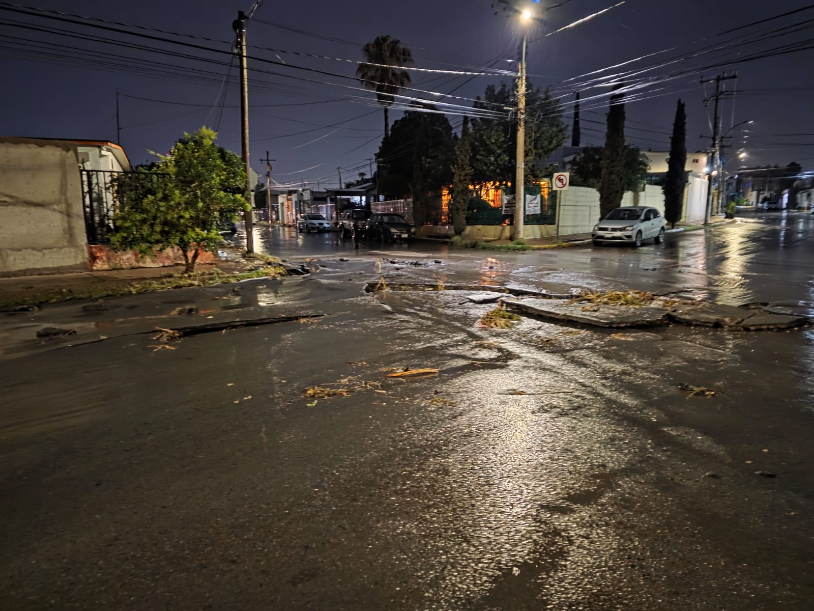Chihuahua, Chih.- Las intensas lluvias provocaron un socavón en la intersección de las calles Huancune y Popocatépetl, donde una camioneta quedó atrapada. El conductor fue auxiliado por vecinos, ya que ni policías ni bomberos lograron llegar al sitio.