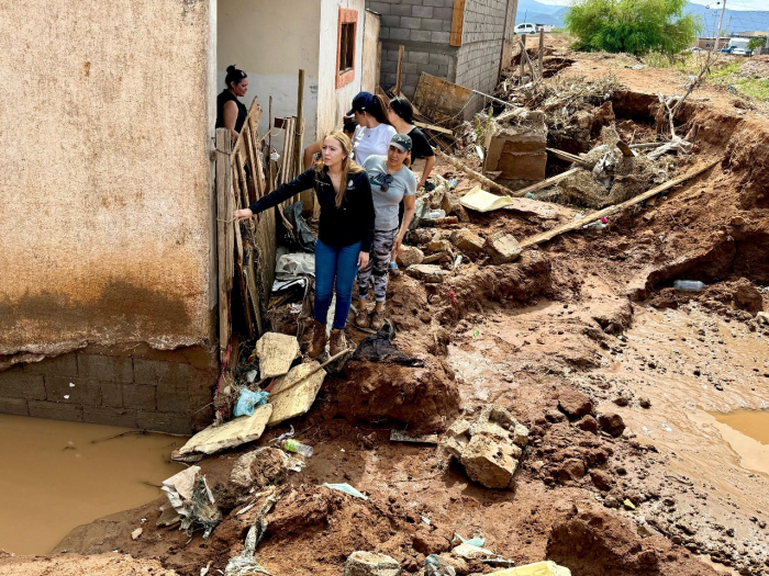 Por FELAChihuahua, Chih.- Tras las intensas lluvias que dejaron severas afectaciones en el Distrito 16, la diputada local Carla Rivas realizó recorridos por colonias como Valle Dorado, San Joaquín y Las Torres para brindar apoyo directo a las familias damnificadas. Muchas de ellas pasaron la noche sin dormir, intentando evitar que el agua invadiera sus hogares.