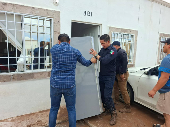 Chihuahua, Chih.- Policías, bomberos y cadetes de la Dirección de Seguridad Pública Municipal acudieron a brindar apoyo solidario a vecinos de Praderas del Sur, luego de que 26 familias fueran desalojadas por los daños ocasionados por las lluvias recientes.En el operativo participaron 77 cadetes, seis instructores y personal operativo, quienes colaboraron en labores de limpieza, traslado de muebles y asistencia directa a las viviendas afectadas.