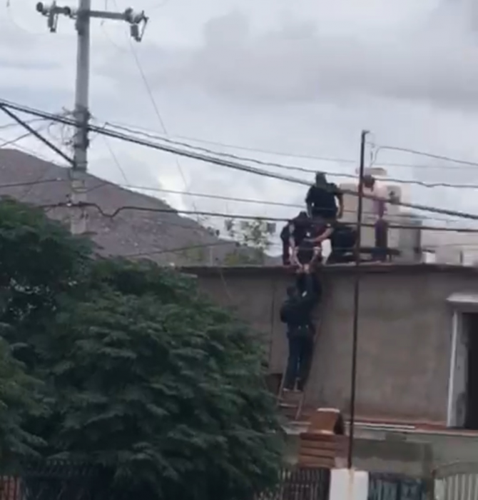 Chihuahua, Chih.- Un joven de 24 años fue bajado por la fuerza desde la azotea de su vivienda por agentes municipales, tras protagonizar una escena de crisis en la colonia Melchor Ocampo.El hombre, que se encontraba en aparente estado de intoxicación, subió al segundo piso de su domicilio en las calles Partido Liberal y 67a, donde amenazaba con lanzarse.