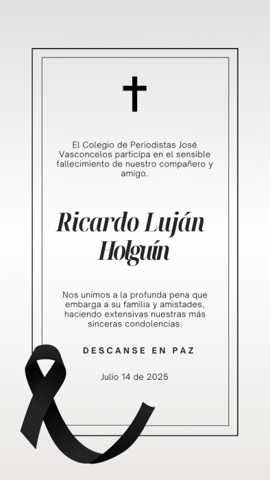 Chihuahua, Chih.- El gremio periodístico lamenta profundamente la pérdida de Ricardo Luján Holguín, destacado comunicador chihuahuense, cuyo fallecimiento fue confirmado este 14 de julio. Diversas agrupaciones, entre ellas el Colegio de Periodistas José Vasconcelos, expresaron su pesar y enviaron condolencias a su familia.Ricardo fue reconocido por su compromiso y ética en el ejercicio del periodismo, así como por su trato cálido entre compañeros de profesión. La noticia de su deceso generó numerosas muestras de afecto y respeto en redes sociales, donde se le recordó como un amigo generoso y una voz respetada.