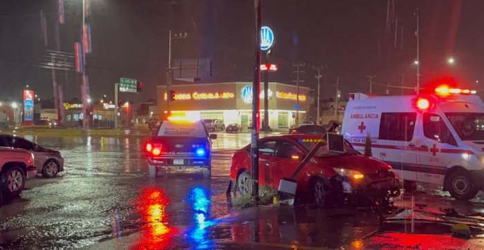 Chihuahua, Chih.- Una mujer resultó herida tras un choque entre un automóvil Ford Focus y una patrulla de la Policía Municipal en el cruce de la avenida Guillermo Prieto Luján y la avenida Hidroeléctrica Chicoasén.