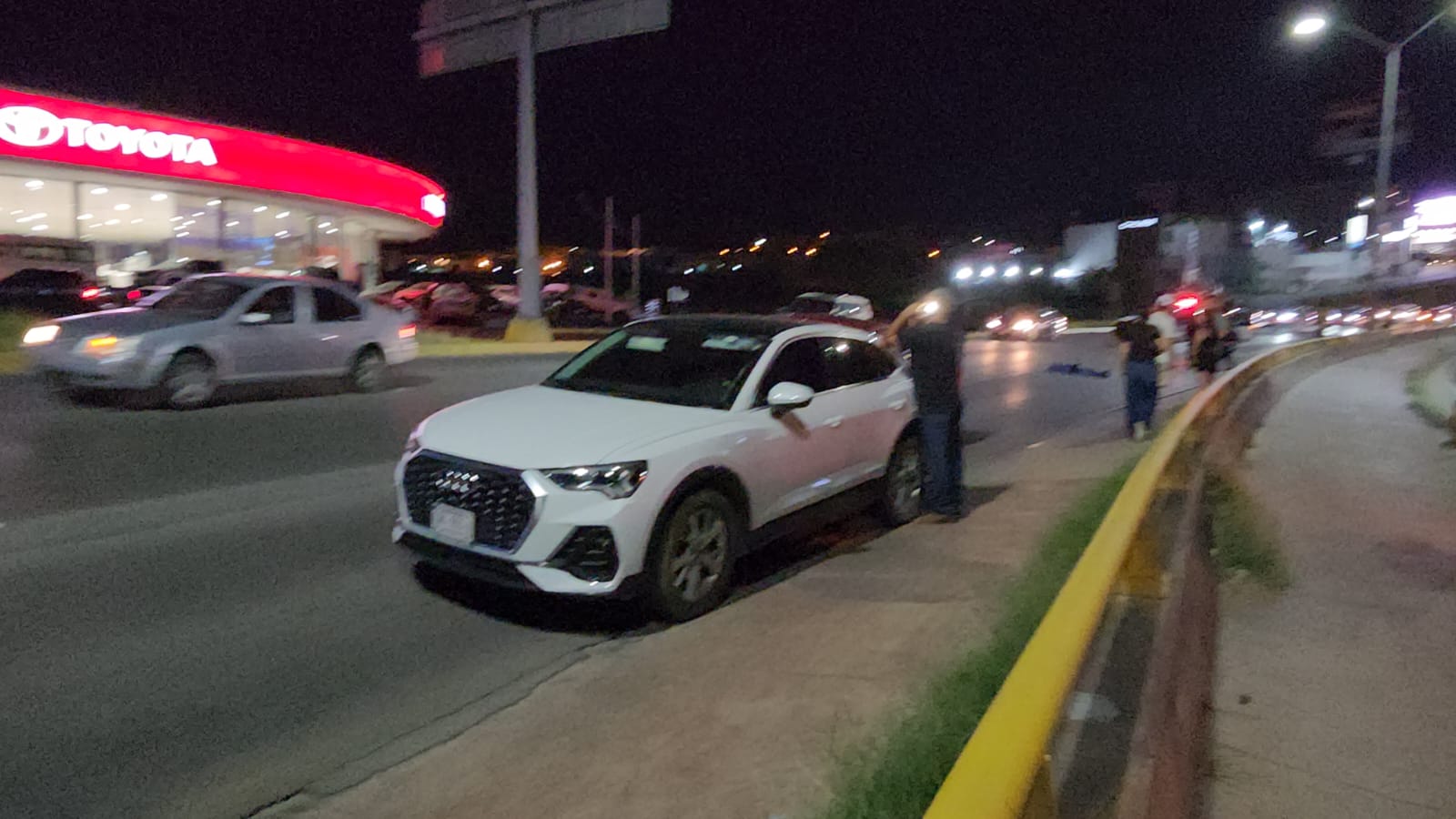 De acuerdo con los reportes, la víctima intentó cruzar de manera repentina la vialidad y fue embestida por una camioneta Audi Q3. El conductor trató de evitar el impacto, pero terminó golpeándolo con el retrovisor derecho, lo que provocó que el peatón saliera proyectado y cayera gravemente herido sobre el asfalto.