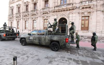 Chihuahua, Chih.- Esta mañana comenzó a desplegarse un operativo militar, federal y estatales en Palacio de Gobierno, donde autoridades de los diferentes órdenes de Gobierno sostuvieron una reunión en materia de seguridad.La reunión tiene como objetivo analizar las estrategias en ciudad Juárez, Chihuahua y la Sierra, luego de que en últimas semanas se incrementarán los incidentes violentos, enfrentamientos y desapariciones.