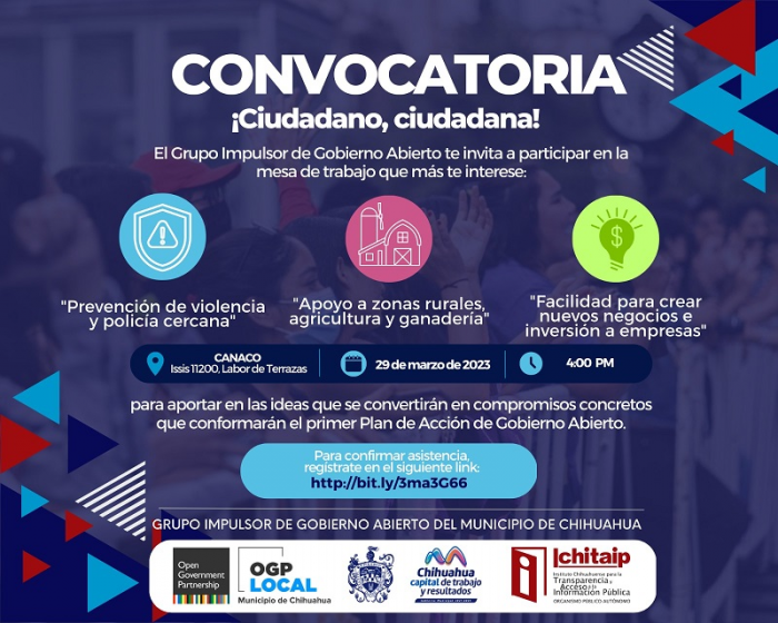 Cabe mencionar que, la Consulta Ciudadana fue organizada por el Grupo Impulsor de Gobierno Abierto, que está conformado por representantes del Gobierno Municipal, así como el Instituto Chihuahuense de Transparencia y Acceso a la Información Pública (ICHITAIP) y ciudadanos.