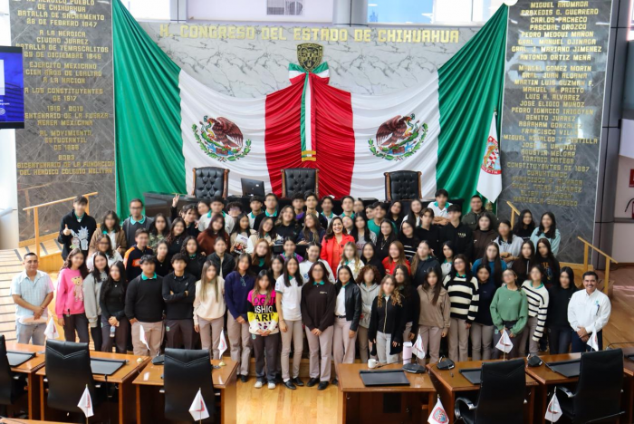 Por FELAChihuahua, Chih.- La diputada Joss Vega recibió en el Congreso del Estado a 90 estudiantes del COBACH Plantel 10, con el propósito de acercarlos al trabajo legislativo e inspirarlos a luchar por sus sueños. Durante la visita, los jóvenes conocieron las funciones de los diputados y recorrieron la torre legislativa.