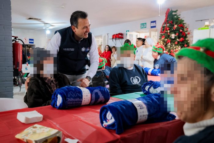 Chihuahua, Chih.- El alcalde Marco Bonilla y la presidenta del DIF Municipal Karina Olivas, llevaron alimentos y actividades recreativas a los abuelos del asilo Bocado del Pobre, como parte de las actividades que cada año realizan por la Navidad.Desde hace más de 100 años, este lugar ha alimentado a la ciudadanía vulnerable de Chihuahua y a los adultos mayores que no tienen familia qué velen por ellos.