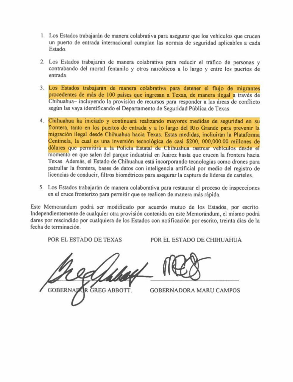 La legisladora juarense, calificó de lamentable que el Estado de Chihuahua utilice presupuesto público para congraciarse con Texas.La diputada juarense, Andrea Chávez, exhibió un acuerdo de cooperación firmado el 14 de abril 2022 entre Maru Campos y el estado de Texas, encabezado por Greg Abbot, el cual tiene como objetivo frenar el flujo de migrantes en las fronteras compartidas de Chihuahua y Texas.