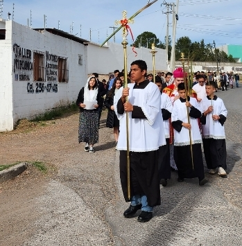 Los feligreses iniciaron la procesión con varios cantos mientras recorrían varias cuadras de la colonia.
