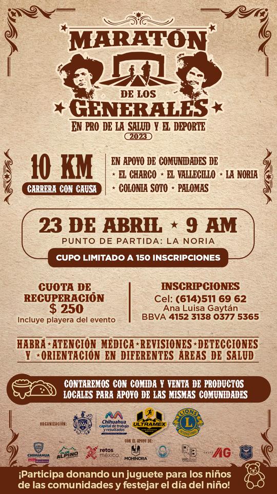 Chihuahua, Chih.- La Secretaría del H. Ayuntamiento, en coordinación con las Regidoras y Regidores, invita a participar en el “Maratón Los Generales”, el próximo domingo 23 de abril a las 9:00 am.