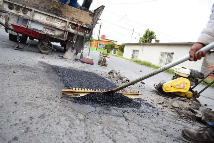 El desgaste diario de las avenidas y calles por el tránsito vehículos, camiones de carga pesada y los cambios bruscos de temperatura, provoca grietas en el pavimento por donde se filtra el agua, ocasionando que las capas de asfalto colapsen creando los baches, los cuales se atienden con una aplicación de mezcla asfáltica caliente en un área previamente perfilada para su mejor adición.