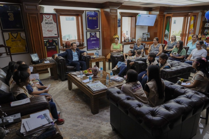 DE AL REDACCIÓNChihuahua, Chih.- En el marco de las actividades por el Día de la Niñez, el alcalde Marco Bonilla, recibió en su Despacho a los niños reporteros del Heraldo de Chihuahua, quienes realizaron un par de preguntas al Presidente Municipal y disfrutaron de una convivencia amena.