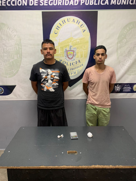 Chihuahua, Chih. - Un par de hombres fueron detenidos en calles de la colonia Puente Oriente, donde agentes de la Policía Municipal les aseguraron droga, así como una báscula gramera.Fue en la calle Alamillo donde los elementos de la Dirección de Seguridad Pública Municipal interceptaron a dos sujetos, uno de ellos manifestó ser de Estados Unidos, y a quienes le decomisaron 37 gramos al parecer de cocaína o cristal, así como una báscula para su pesaje.
