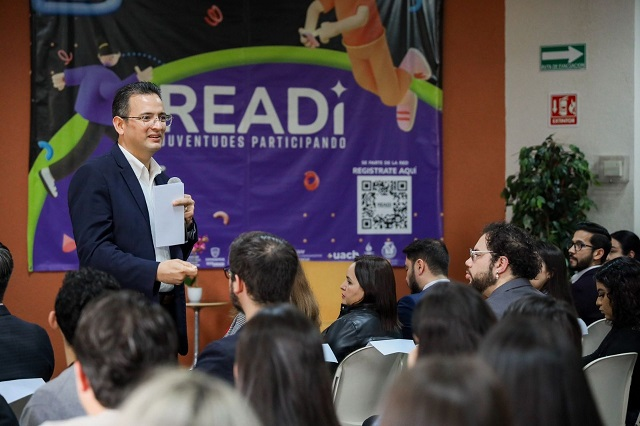 Chihuahua.- Durante el arranque de la Red de Agrupaciones Juveniles Democráticas (READI), en el auditorio del Tecnológico de Monterrey, el alcalde Marco Bonilla hizo un llamado a las y los jóvenes presentes a defender la democracia, porque cualquier acción en contra de ella, es un ataque frontal en contra de las garantías individuales y la libertad de elegir lo que queremos.
