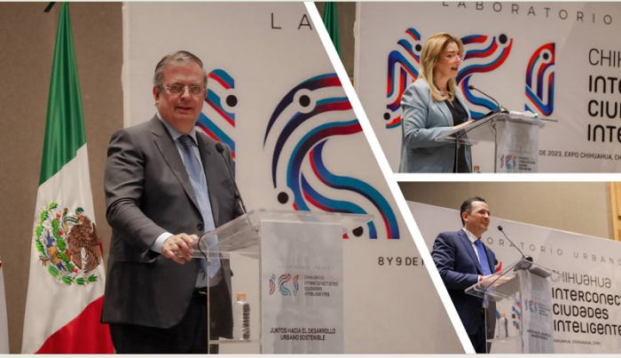 Chihuahua, Chih.- En su camino por evolucionar hacia una ciudad inteligente y mejorar la calidad de vida de la ciudadanía, Chihuahua Capital es sede del foro “Interconectando Ciudades Inteligentes”, inaugurado por la gobernadora Maru Campos, el alcalde Marco Bonilla Mendoza y el canciller Marcelo Ebrard, que coincidieron en sus mensajes que los objetivos de estas actividades son lograr la equidad, el desarrollo económico y cuidado del medio ambiente.