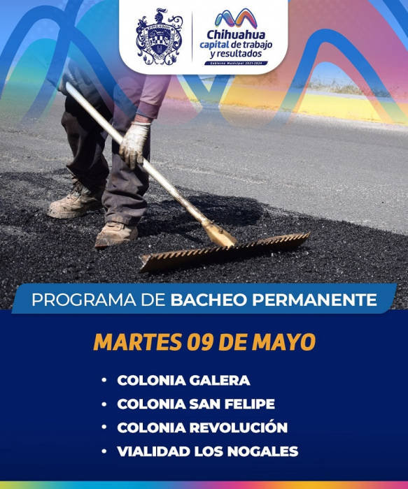 El día de hoy, martes 9 de mayo, se trabajará en las colonias Galera, San Felipe, Revolución y vialidad Los Nogales.