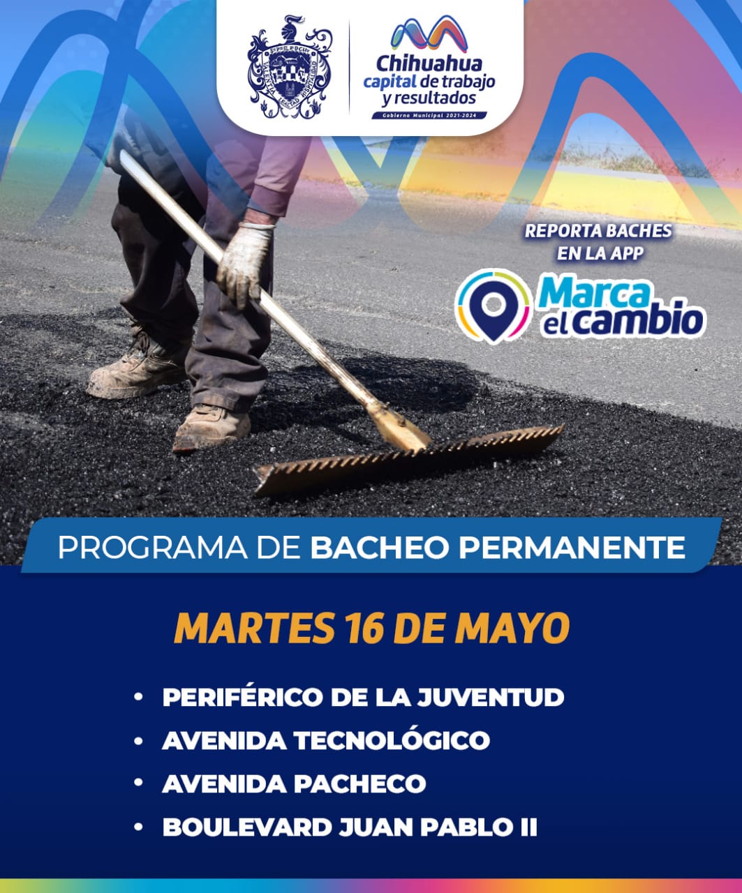 Además, se pide a la ciudadanía a realizar su reporte de bache marcando al 072 en el Centro de Respuesta Ciudadana (CRC), o en la aplicación Marca el Cambio, totalmente gratuita en cualquier plataforma como Android e iOS.