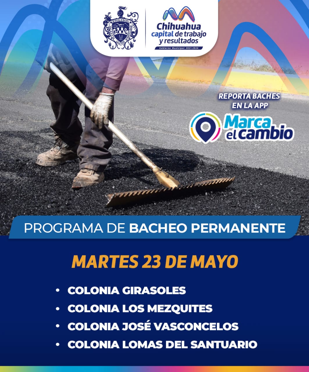 Hoy, martes 23 de mayo, los trabajos se concentrarán en las colonias Girasoles, Los Mezquites, José Vasconcelos y Lomas del Santuario.