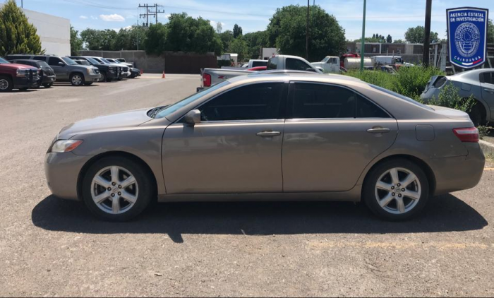 Chihuahua, Chih.- Elementos de la Agencia Estatal de Investigación aseguraron dos vehículos que contaban con reporte de robo, uno de los cuales fue presentado de manera voluntaria por la persona que lo poseía para que se revisará su situación legal.Se trata de un sedán de la marca Toyota, línea Camry, modelo 2008, color dorado, sin placas de circulación, el cual cuenta con reporte de robo del 8 de diciembre del 2022, en Ciudad Juárez.