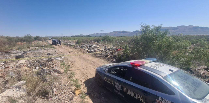 Chihuahua, Chih.- Autoridades policiales encontraron el cadáver de un hombre en un camino de tierra utilizado como vertedero clandestino en la colonia Granjas del Valle.La víctima presenta dos heridas de bala en la cabeza y viste pantalón negro, una camiseta gris y zapatillas negras.